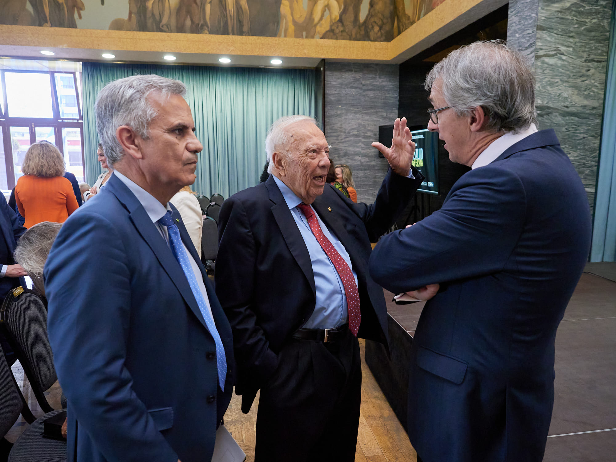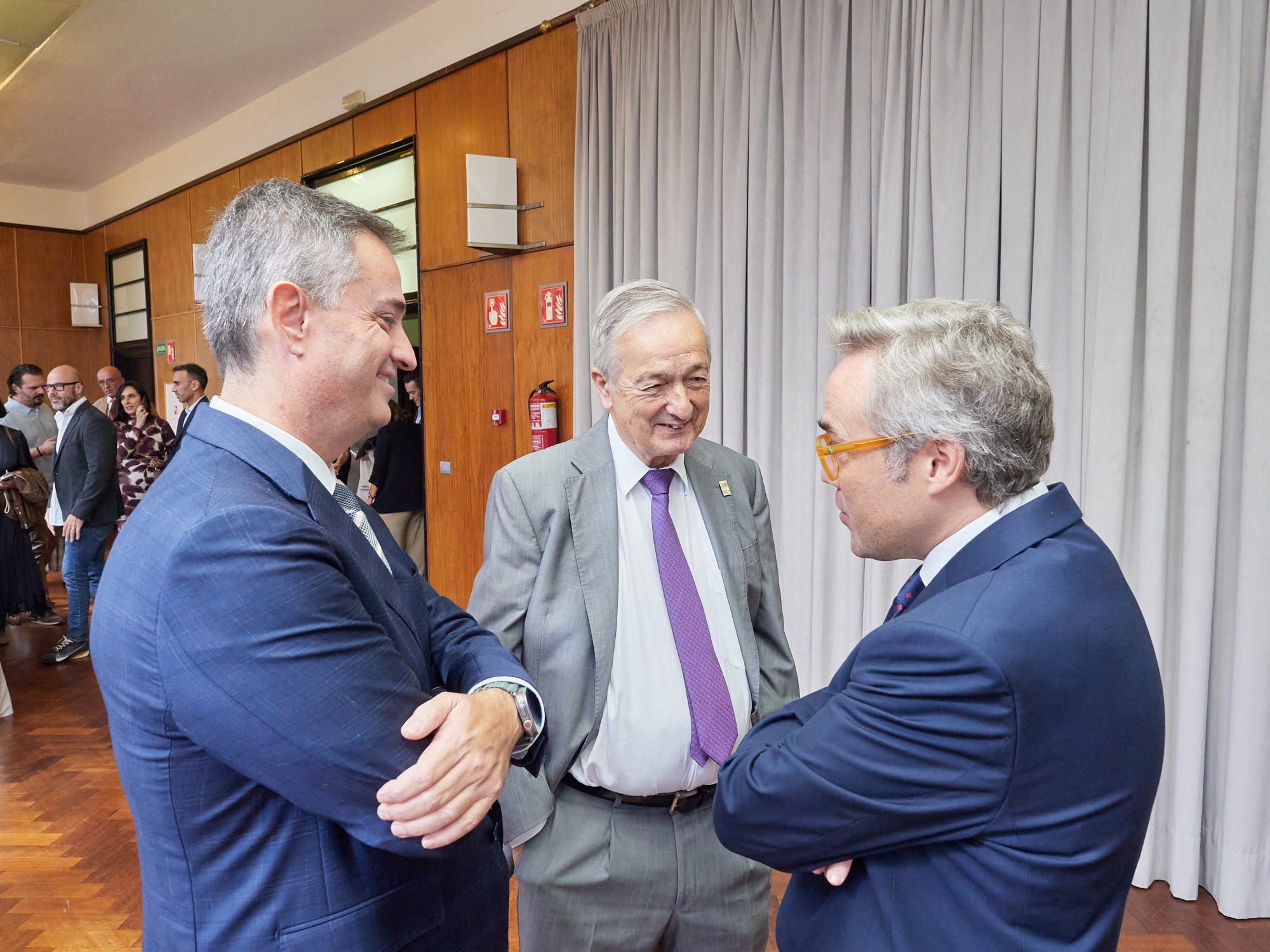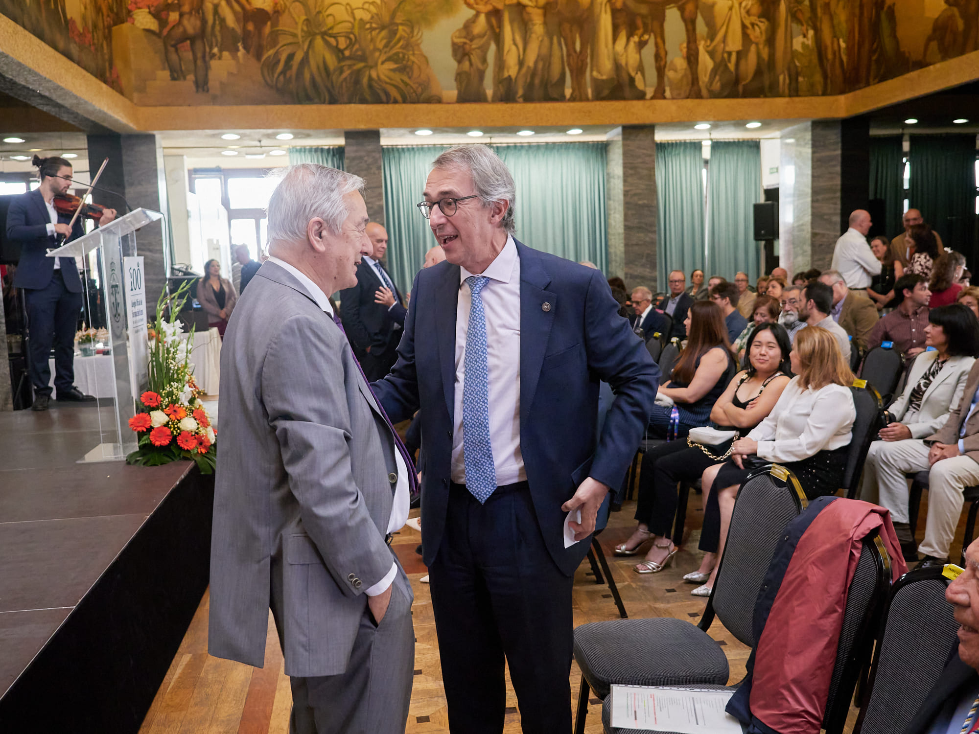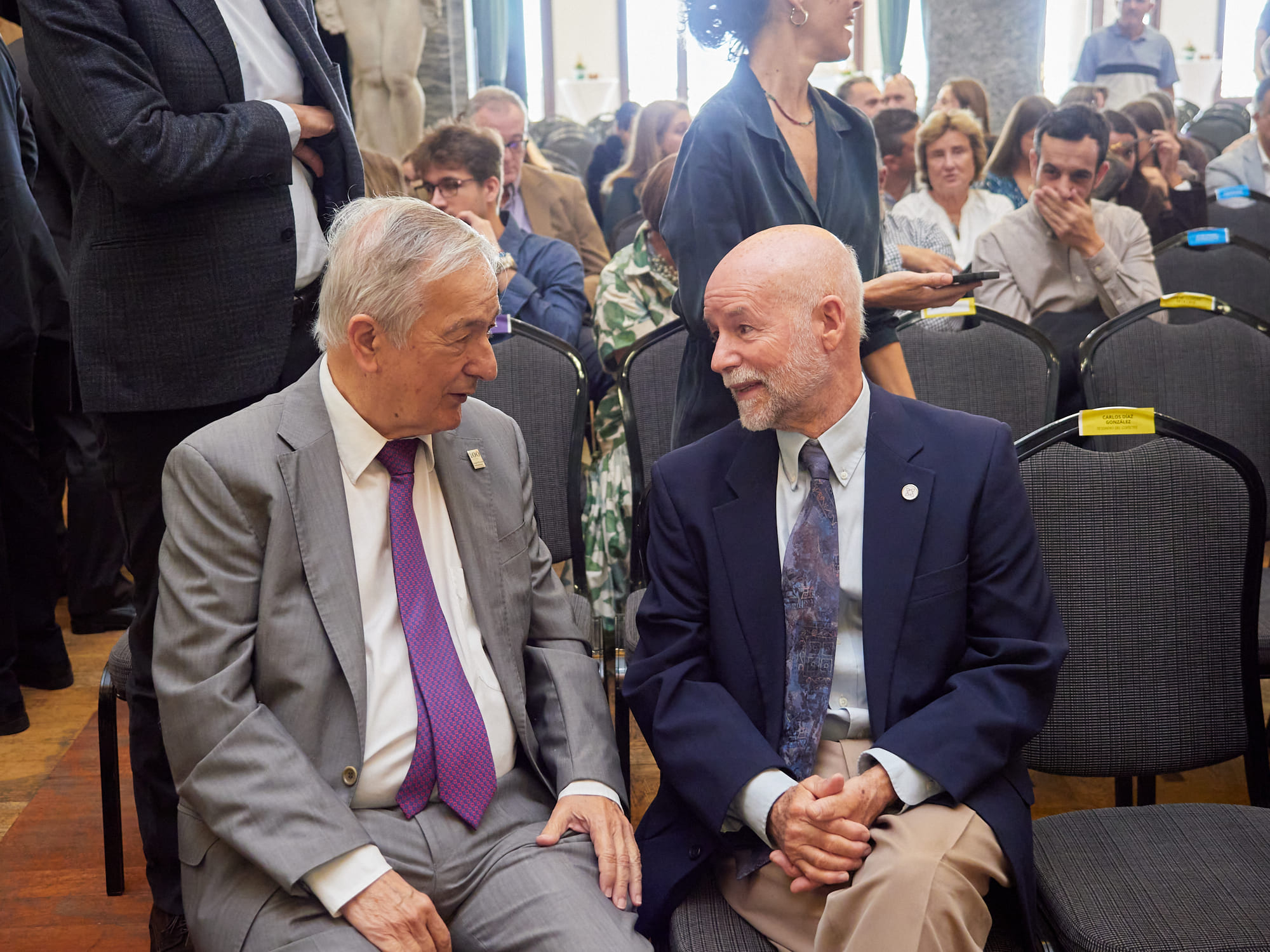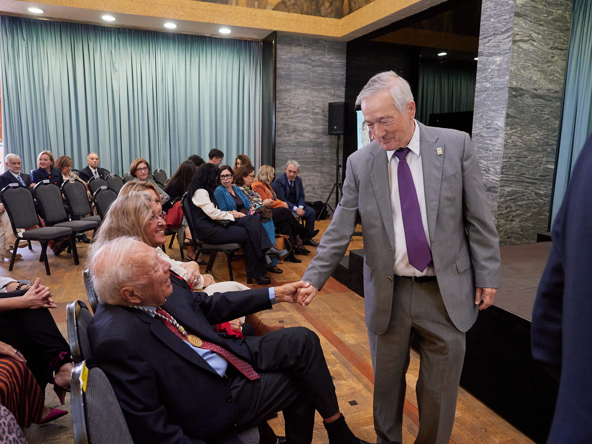 Quedará para la historia del Colegio el encuentro entre el Catedrático Wolfredo Wildpret De la Torre, Medalla del Colegio 2024, y Enrique Ordieres Sagarmínaga, Medalla del Colegio 2025.