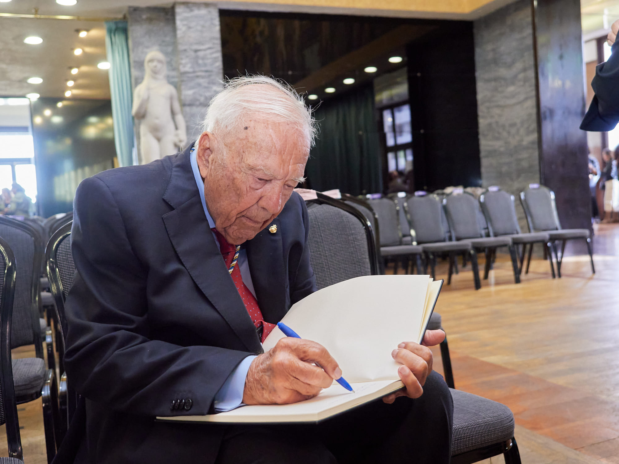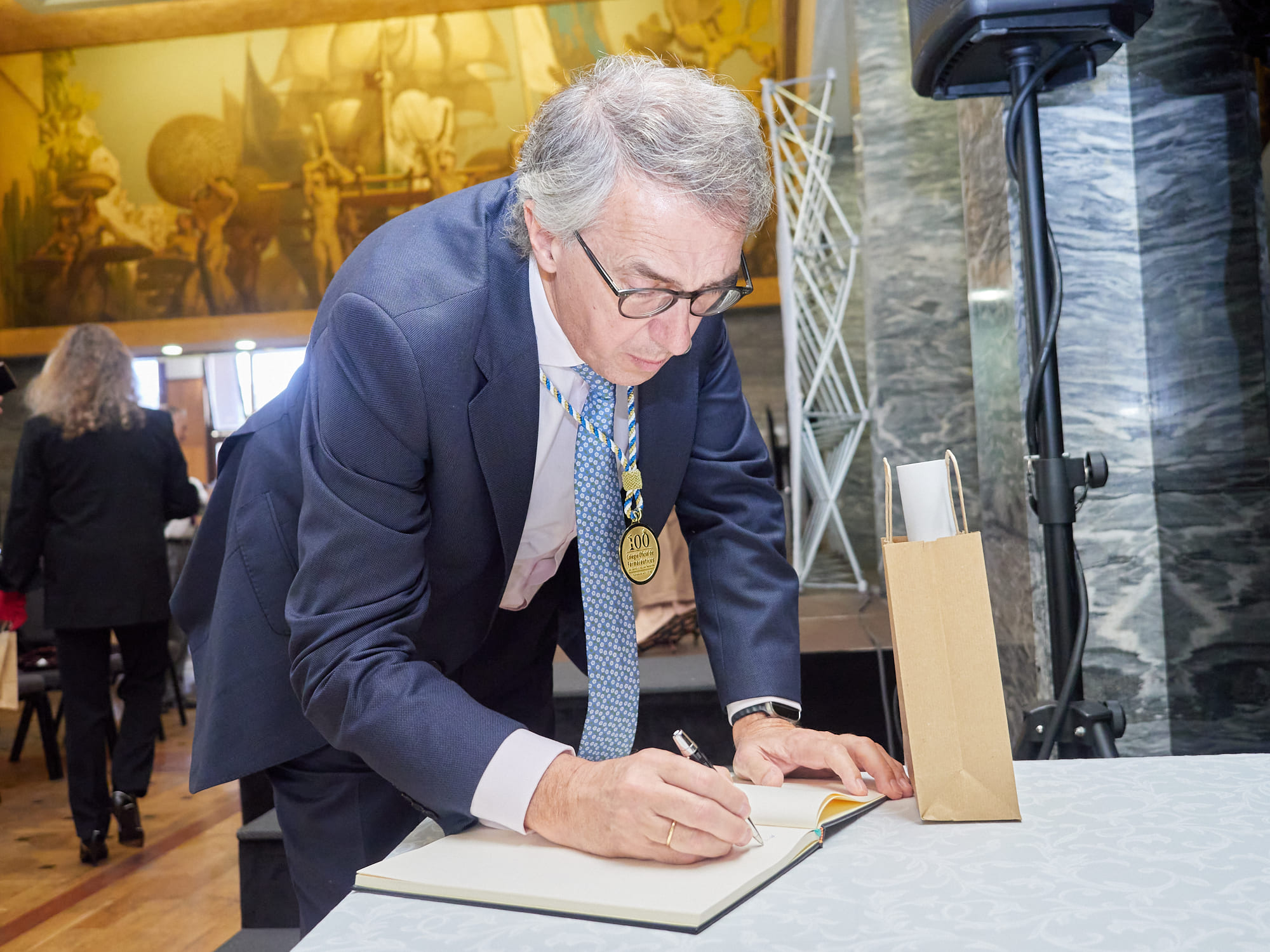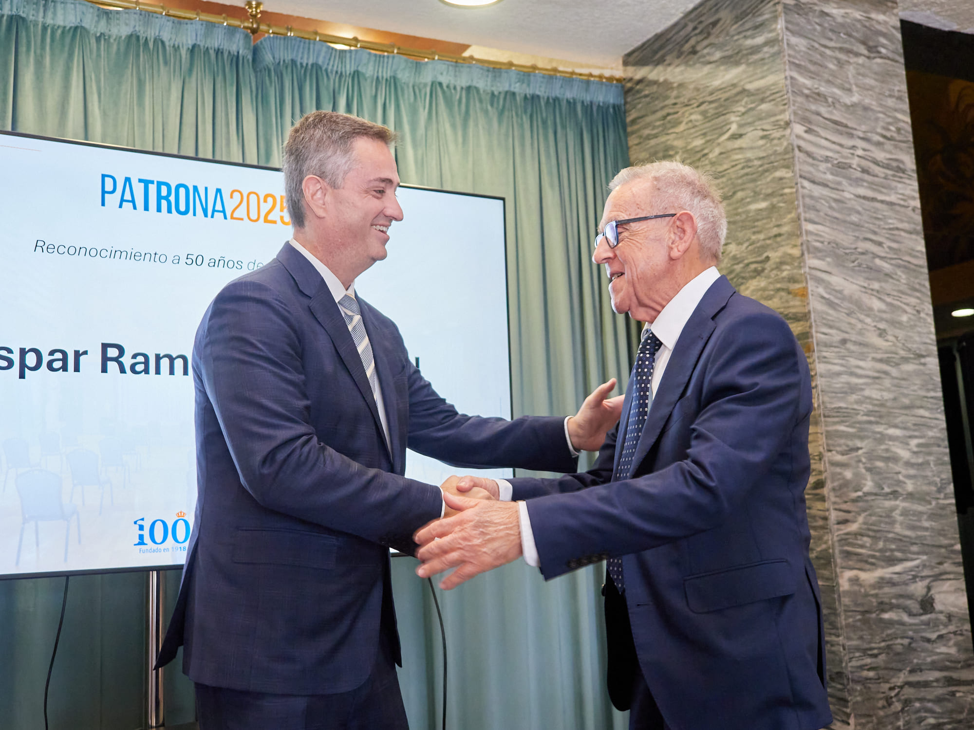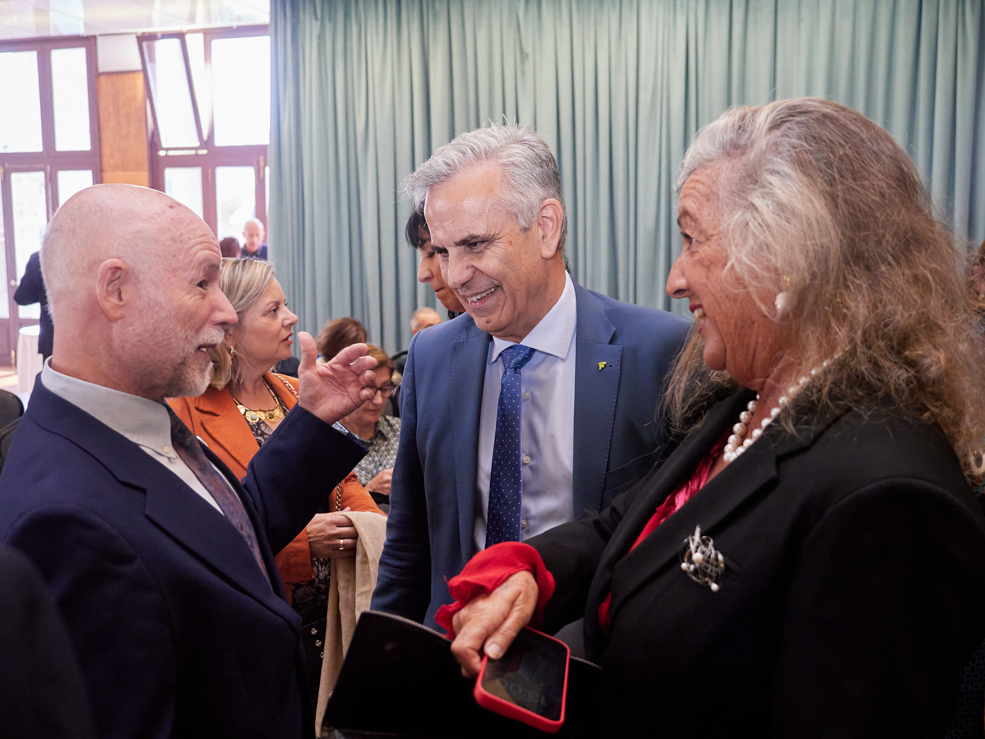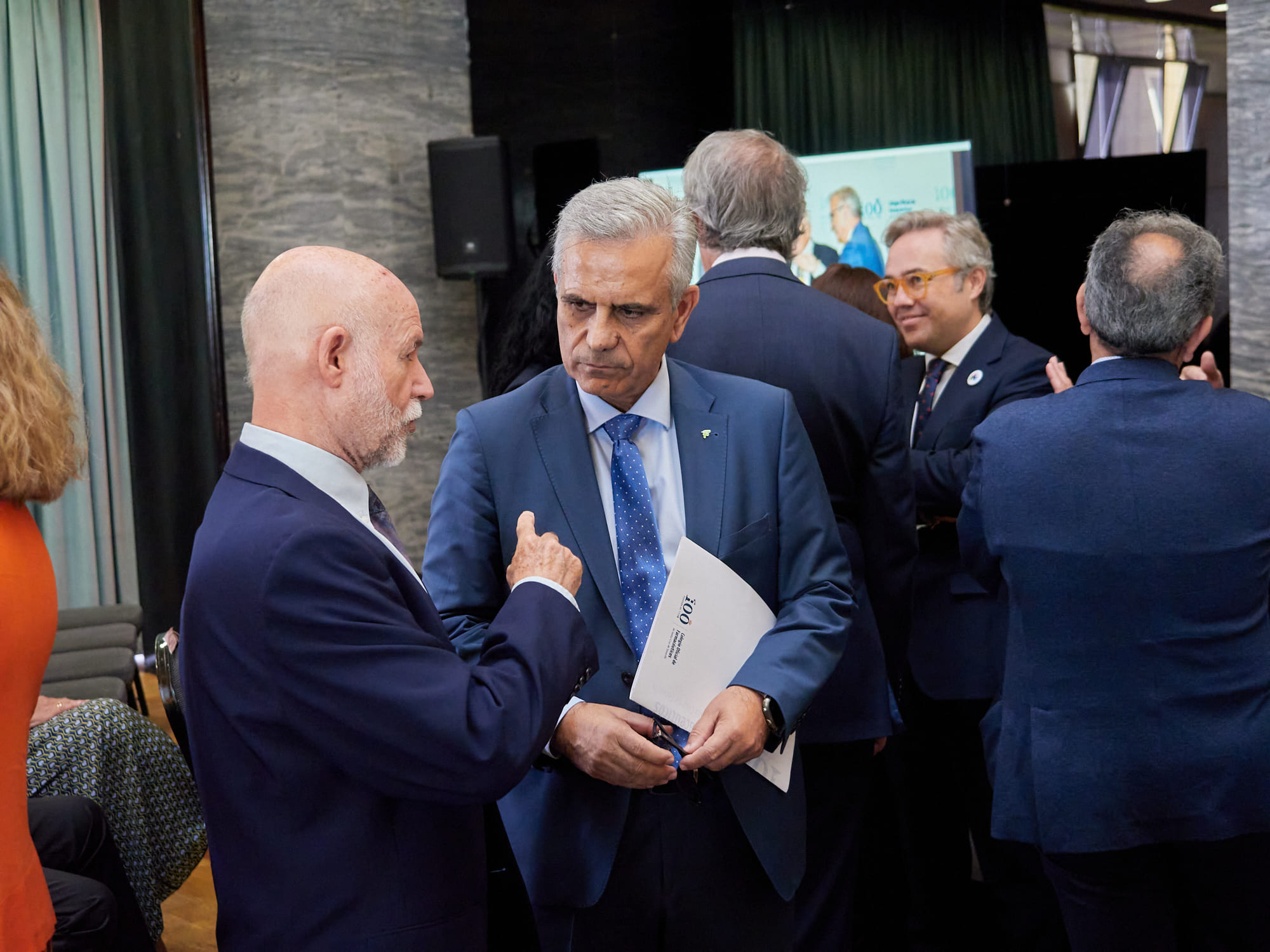 Quedará para la historia del Colegio el encuentro entre el Catedrático Wolfredo Wildpret De la Torre, Medalla del Colegio 2024, y Enrique Ordieres Sagarmínaga, Medalla del Colegio 2025.