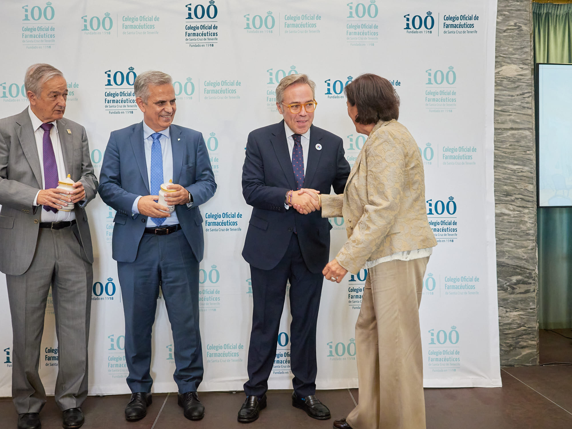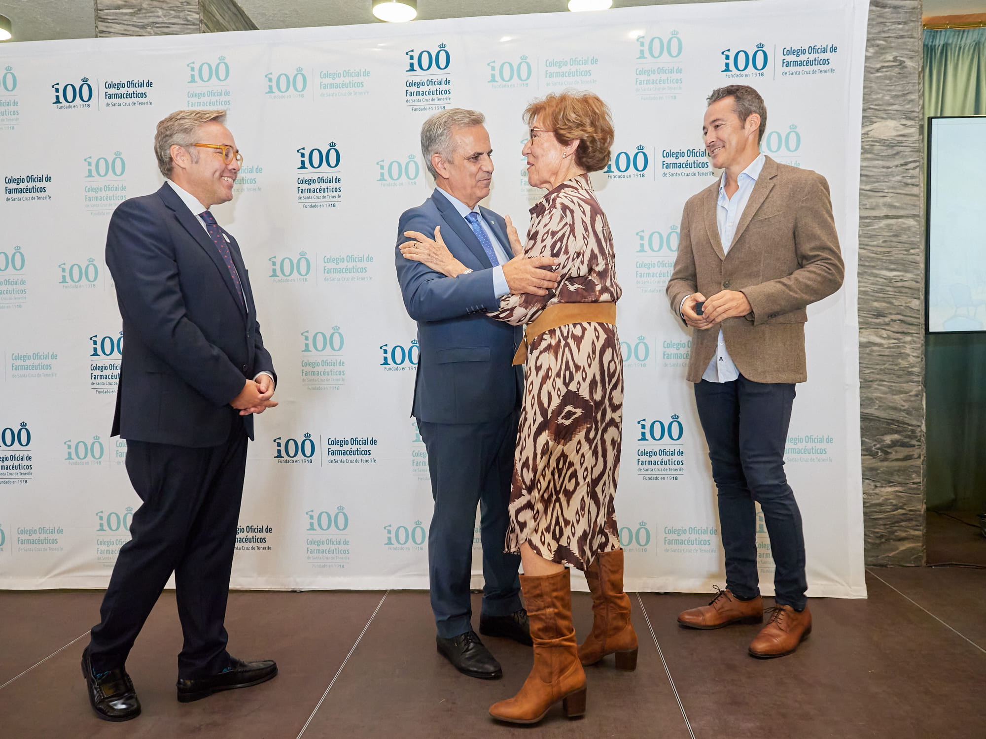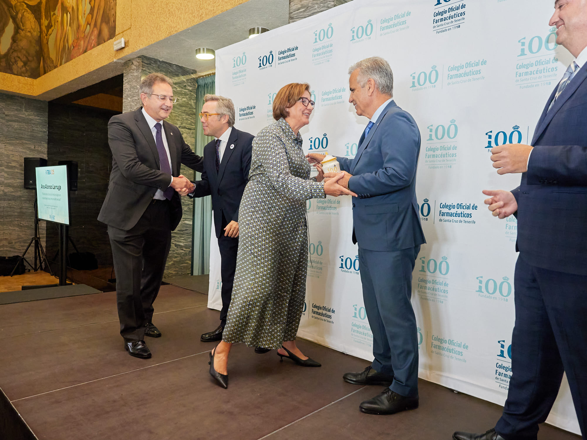 La ceremonia contó con la participación de Isabel León, vicerrectora de Cultura y Extensión Universitaria de la Universidad de La Laguna; José Bruno Fariña, director de la Cátedra Canaria de Farmacia; y Emma Carmelo, secretaria académica de la Cátedra, quienes intervinieron junto al presidente del Colegio, Manuel Ángel Galván González.